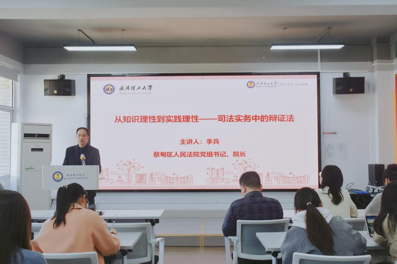 11月14日上午,第八期卓越实务专家大讲堂在学院学术报告厅成功举办。本次活动特邀湖北省武汉市蔡甸区人民法院党组书记、院长、二级高级法官李兵,为我院师生作以“从知识理性到实践理性——司法实务中的辩证法”为主题报告,法社学院院长刘介明教授主持,百余名师生参加。