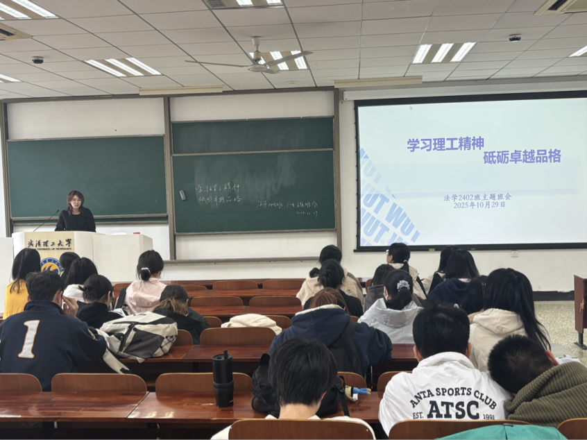 为弘扬理工精神,践行麻豆tv “厚德博学,追求卓越”的校训,10月29日,法学2402班在南湖校区博学主楼308教室举办了“学会理工精神,砥砺卓越品格”主题班会,会议由班长孙畅主持。