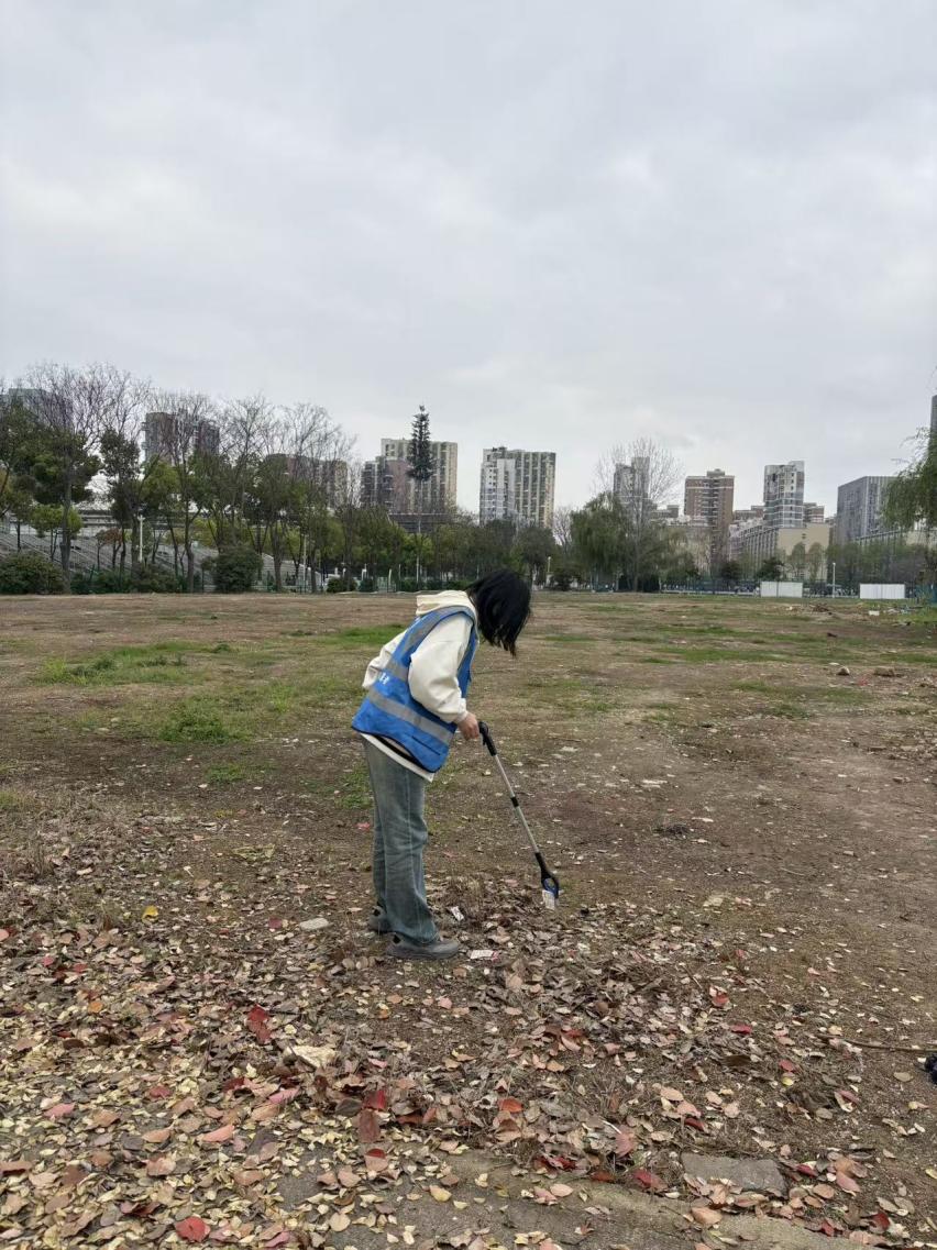 理论宣讲结束后,全体团员手持垃圾袋、垃圾夹等工具,在团支部的组织下前往校园主干道、草坪绿化带、操场周边等区域开展垃圾拾捡劳动。活动中,团员们以小组为单位,分工协作、相互配合,认真清理道路上的纸屑、塑料瓶、零食包装袋,仔细捡拾草坪中隐藏的烟头、枯枝败叶,不放过任何一处卫生死角。面对绿化带深处不易清理的垃圾,团员们弯腰俯身、耐心捡拾,即使双手沾满灰尘也毫无怨言;遇到路过的同学,大家还主动宣传垃圾分类知识和校园环保理念,呼吁更多同学加入守护校园环境的行列。阳光洒在团员们忙碌的身影上,鲜艳的团徽在劳动中熠熠生辉,成为校园里一道靓丽的风景线。经过近一个小时的辛勤劳动,校园内的道路和绿化带恢复了整洁美观,团员们的脸上也洋溢着劳动后收获的喜悦。