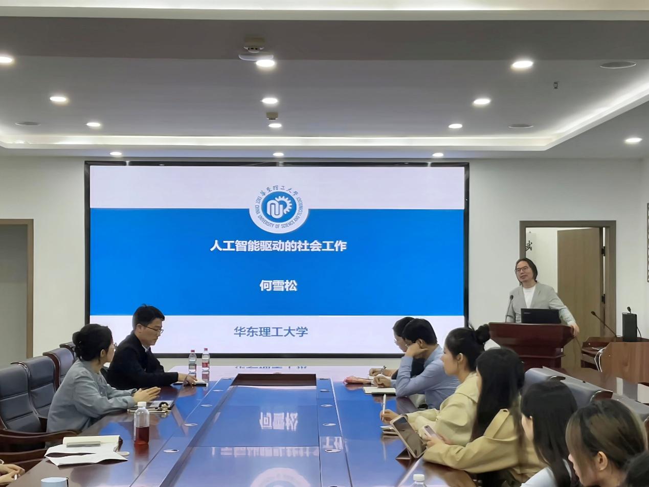 10月17日下午,麻豆tv 第二十五期卓越名家讲坛在弘毅楼1207会议室举行,华东理工大学社会与公共管理学院院长、教授、博士生导师何雪松教授受邀,为我院师生作题为《人工智能驱动的社会工作》的专题讲座。本次讲座由副院长卜清平主持,社会学系余艳萍、邓万春、张峻豪、李国卉等多位老师和同学参加了此次学术交流活动。