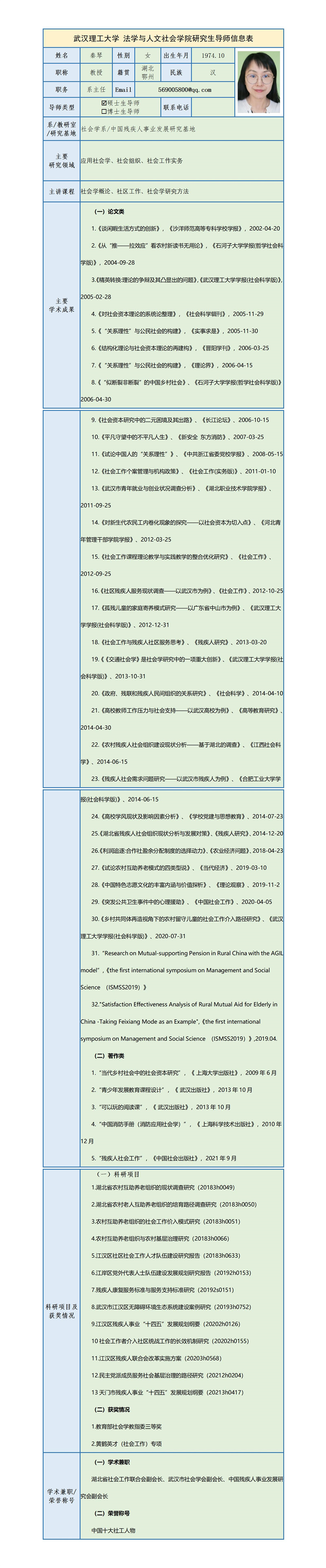 秦琴 教授 简介