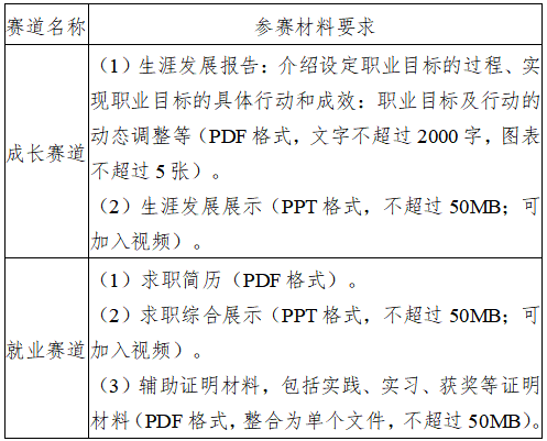 2.就业赛道。面向本科2022-2023级学生与研究生,考察其求职实战能力,对照目标职业及岗位要求,个人综合素质和专业能力等方面的契合度,个人发展路径与就业市场需求的适应度。优秀参赛学生可获得岗位录用意向。