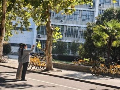 活动伊始,主持人周何慧子播放了盲人摄影师李娜的访谈片段,阐释了“用非视觉视角发现世界”理念,并介绍了活动规则。参与者分为“摄影师”和“引导员”两类角色。摄影师戴上眼罩,模拟视障状态进行拍摄;引导员则负责路线规划、拍摄辅助与安全保障。随后,各小组按不同路线在校园中展开拍摄。从树木的纹理、石径的触感,到建筑的轮廓,参与者在非视觉状态下捕捉画面,感受环境的细微变化。