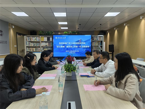 关革强教授对敏行辅导员工作室的热情接待与大力支持表示感谢,对学院在学生工作领域的创新实践与发展成效进行了高度评价与肯定。“匠心铸魂”辅导员工作室主持人农贵副教授介绍了广西工业职业技术学院学生工作与辅导员工作室建设的基本情况,并表达了希望通过此次调研交流共同探讨新时代学生思政工作提质增效方案的殷切期待。