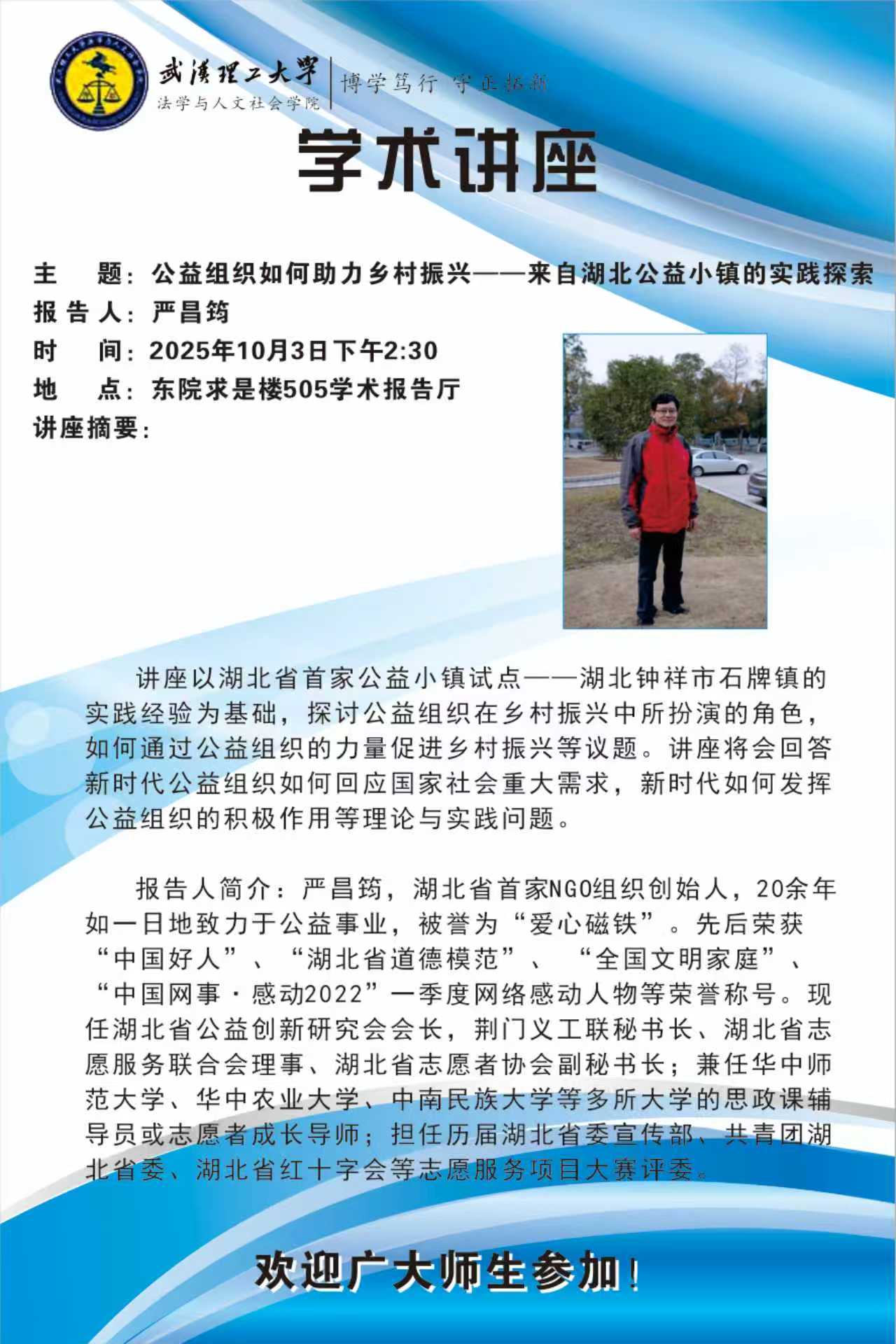 学术讲座:公益组织如何助力乡村振兴——来自湖北公益小镇的实践探索