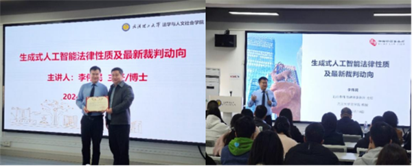 3月14日上午,中国政法大学法学博士后、武汉大学法学院兼职教授、北京市伟博律师事务所创始人李伟民主任受邀在弘毅楼915作题为“生成式人工智能法律性质及最新裁判动向”的专题讲座。院党委书记范涛、法学系主任胡神松、副主任薛志华、教师代表、研究生代表共计100余人参加。范涛书记为李伟民主任颁发实务专家聘书,专硕中心主任孟奇勋主持讲座。