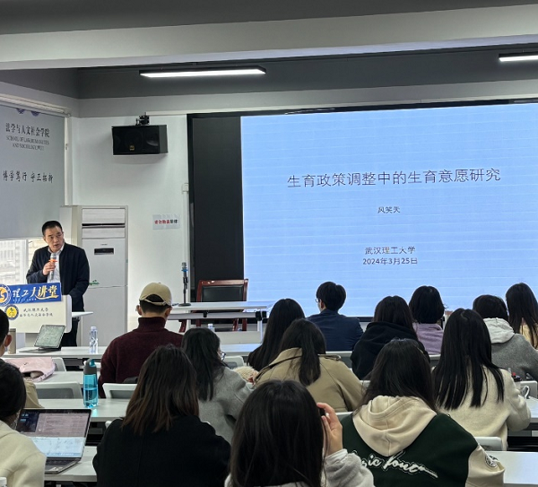3月25日,南京大学特聘教授风笑天做客“理工大讲堂”,在东院弘毅楼915为师生作主题为“生育政策调整中的生育意愿调查”的讲座。讲座由邓万春教授主持,李牧院长以及学院师生100余人参加。